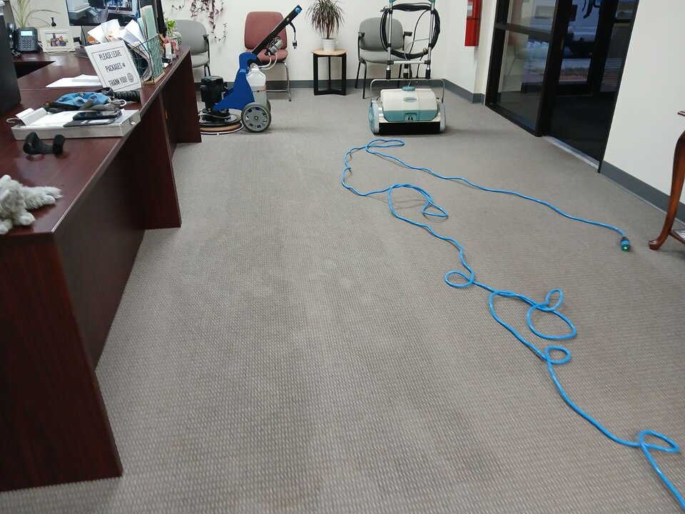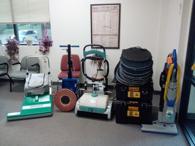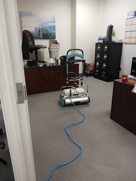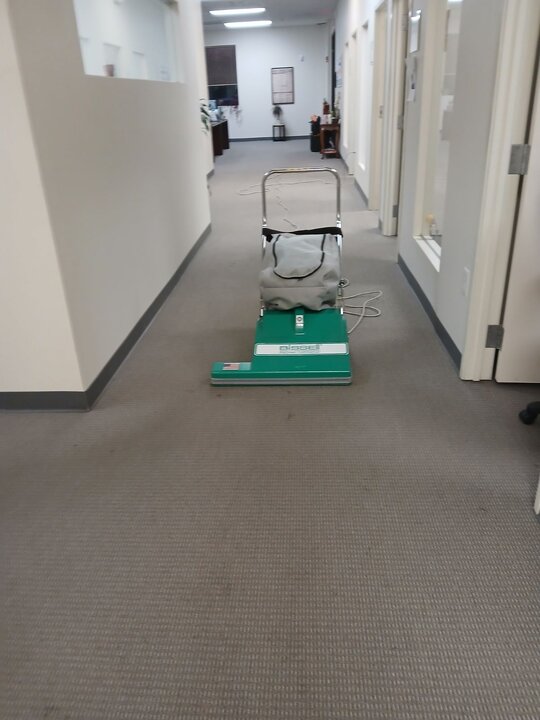 Vacuumed with BIG GREEN a 28'' Bissell Big Area Vacuum for Hallways, Big Offices, Conference Rooms, and used 20'' Lindhaus Vacuum for the smaller offices and room with cubicles