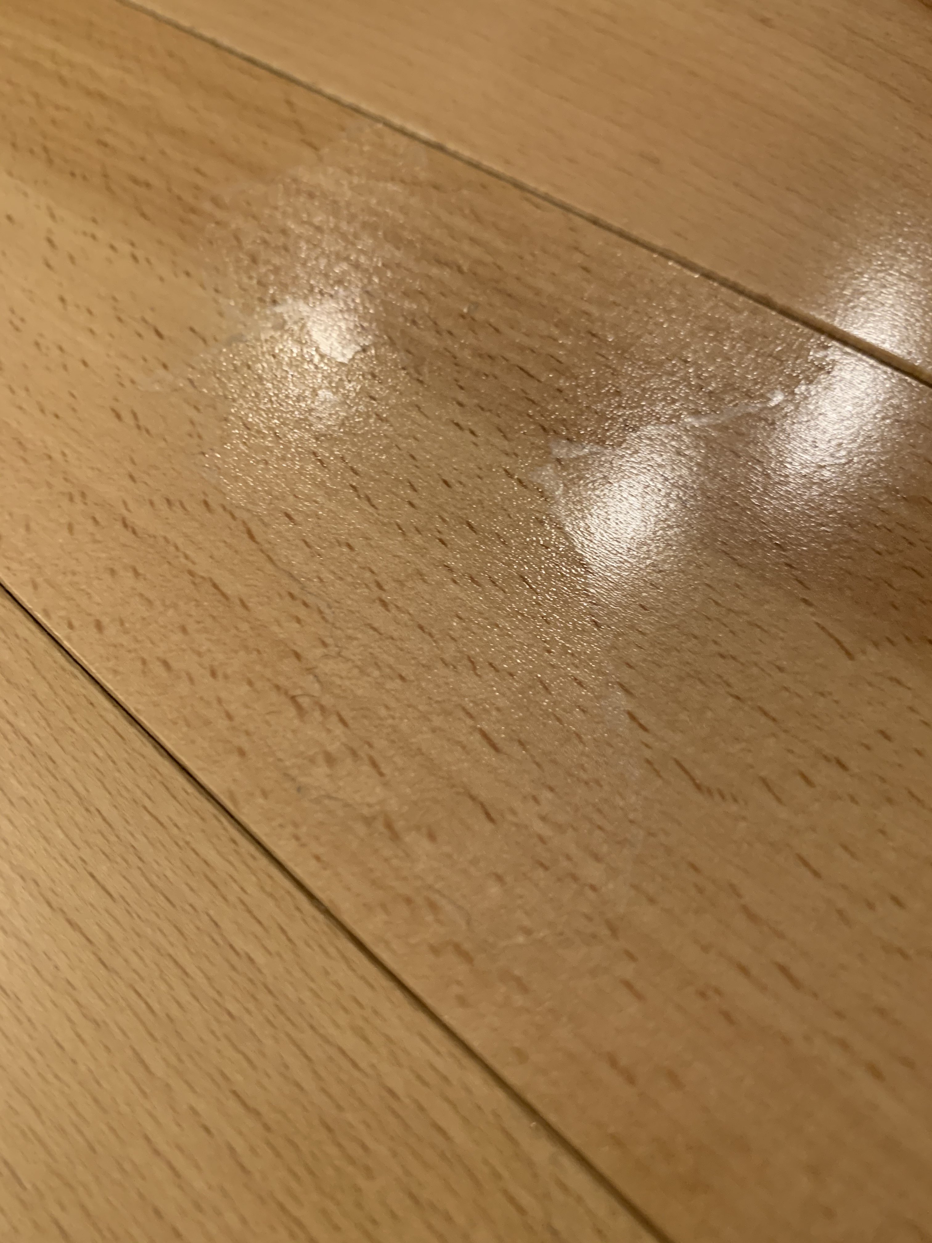 It just took the shine off. A new finish that is glossy will dull easily. Just polish area with a micro fiber rag. The shine shoukd come right back. Maybe a little pledge would help.