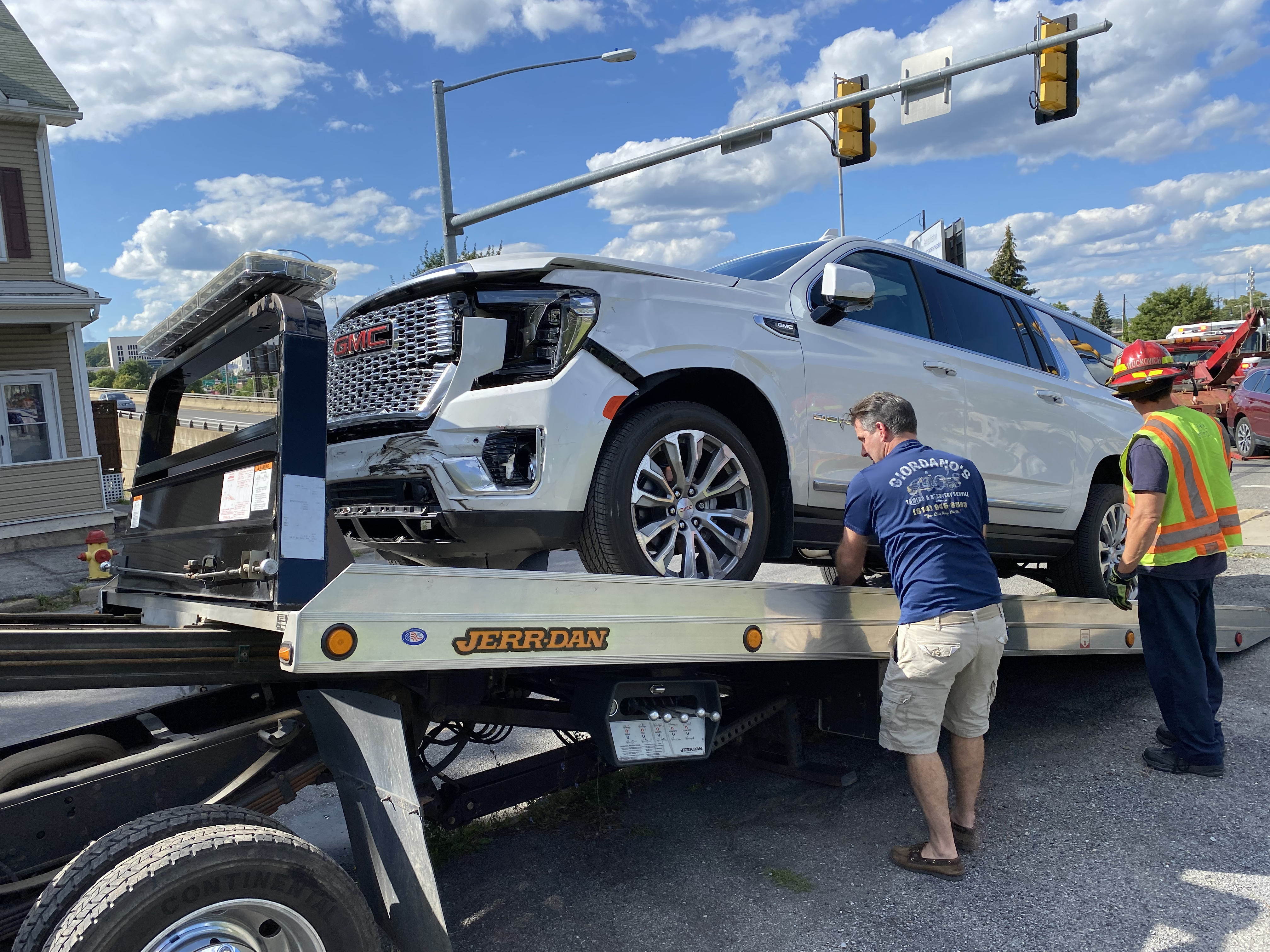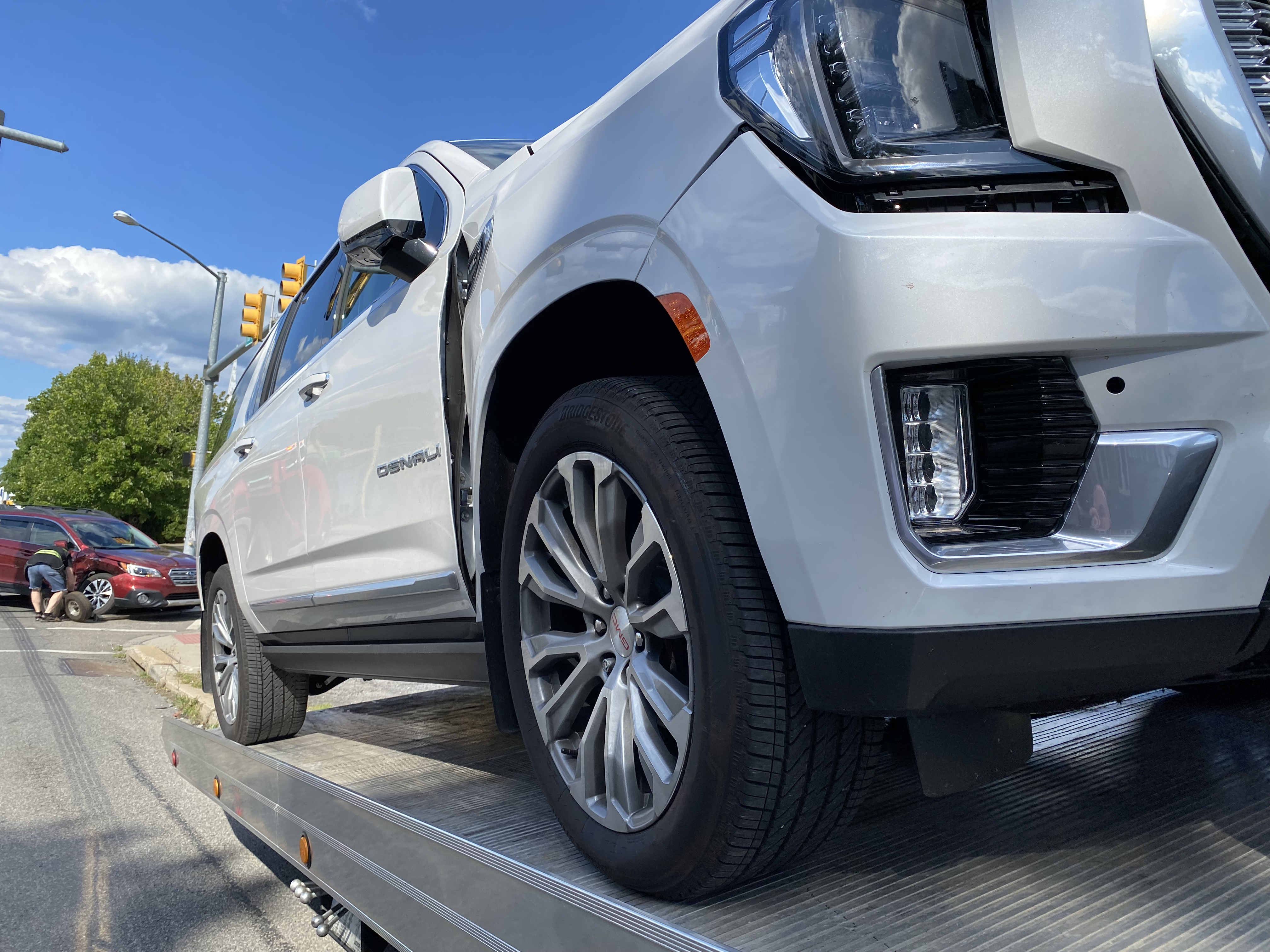 Bought a new GMC Yukon Denali XL, had it two weeks and it got hit. It did it's job keeping Kathie safe but took a heck of a hit.