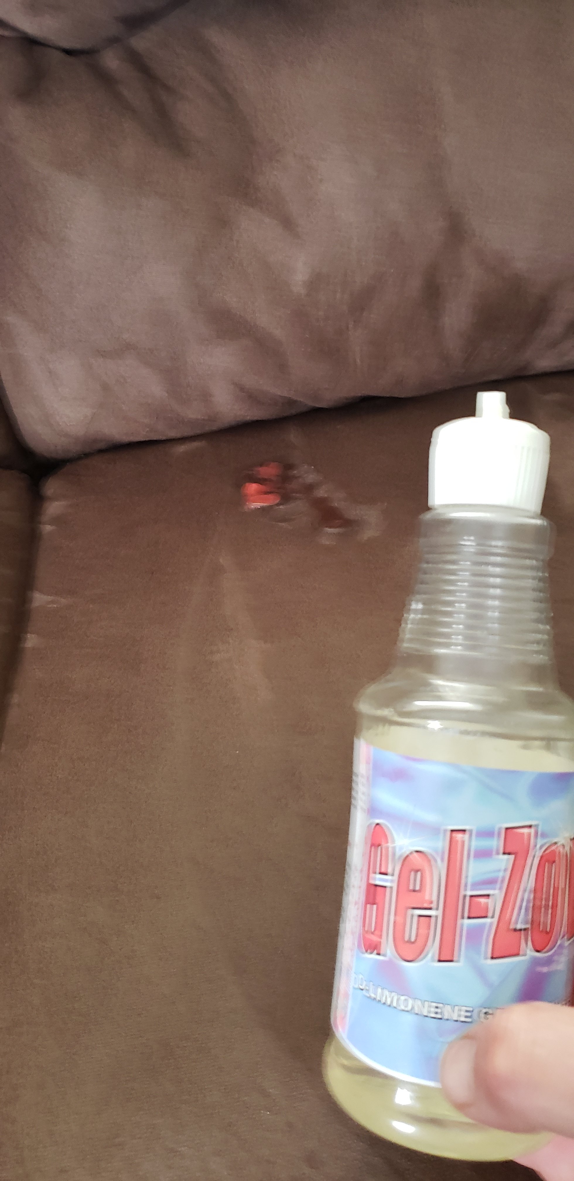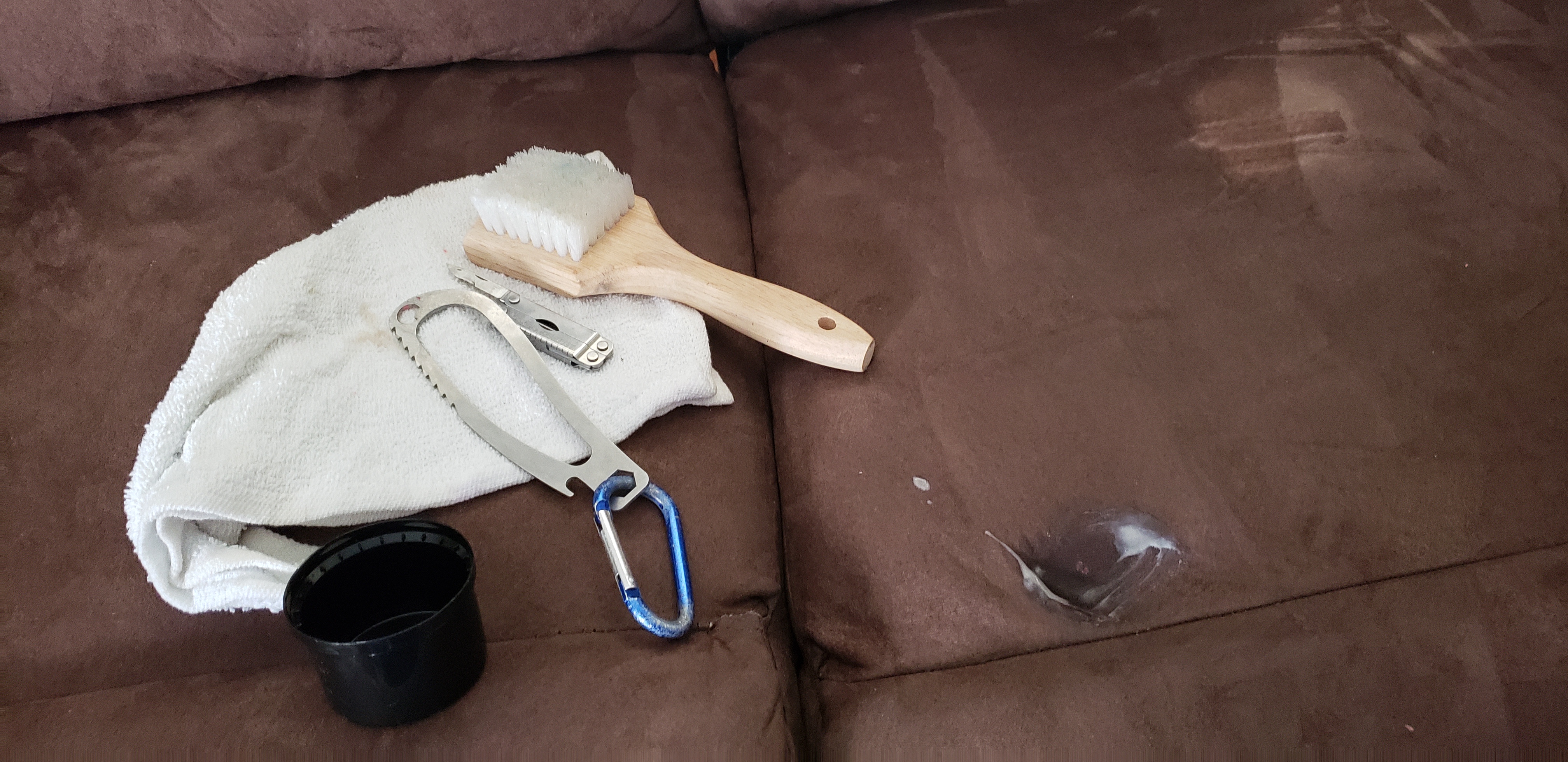 Puke (and homemade slime) on microfiber couch.... So much crap around the couch... Was ready to just get back in the van and head back south!